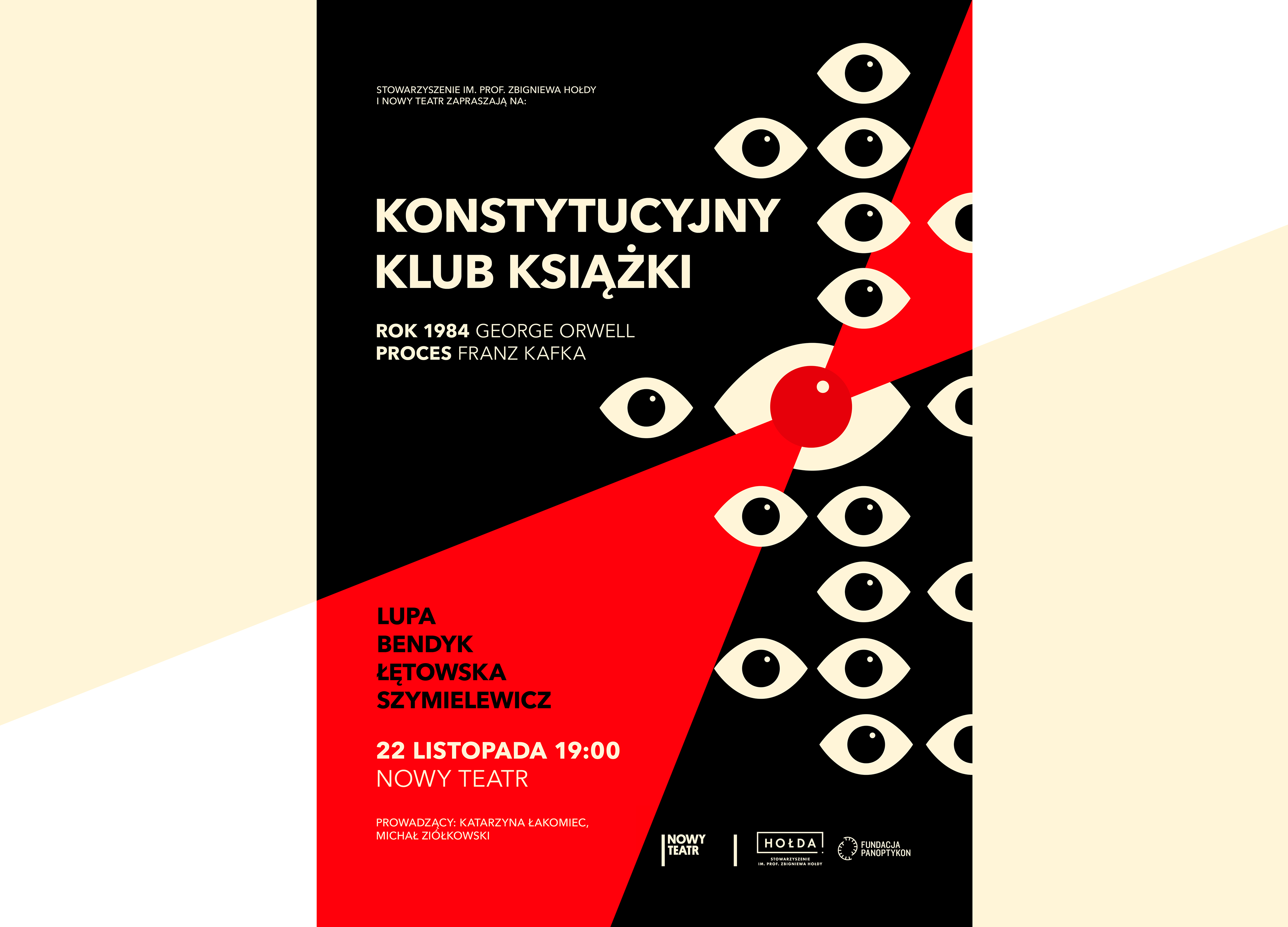 “W roli głównej” (Starring) is a series of interdisciplinary events which focus on law problems presented in the literature. Those events take place in various Warsaw theatres with guests from all walks of life - from Law and Privacy subjects to Theatrology and Journalism. First discussion focused on Franz Kafka and George Orwell books and was raised because of the polish premiere of Process (directed by Krystian Lupa in Nowy Teatr Warszawa).